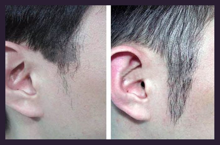 后,取毛囊、分离毛囊、种植毛囊。鬓角种植是在高倍显微镜下,采用进口取发笔,取出后枕部健康的毛囊组织,经过专业的高倍显微分离毛囊组织后,采用0.6mm进口种植笔,种植到鬓角部位。毛囊存活后便会长出健康的新毛发,保持原有毛发的一切生物特性,成活后不再脱落。鬓角种植效果怎么样>>>